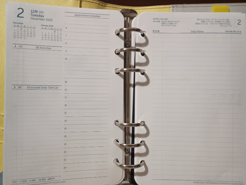 フランクリンのデイリーリフィルは行間が狭くて、細かい文字を書くのが年々しんどく感じるように。