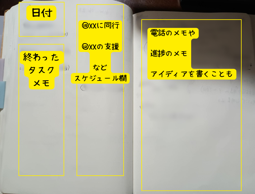面談や電話が多い日は1ページびっしり埋まるけれど、何もない日は空白だったり。