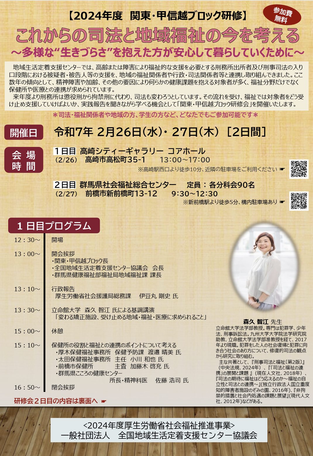 | 参加対象 | 司法・福祉関係者や地域の方、学生の方などどなたでも参加可能 |